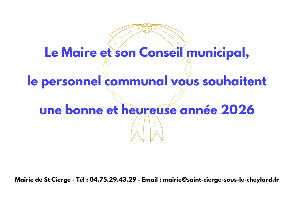 Meilleurs voeux 2026 ! 26-01-12 Les voeux de la municipalité auront lieu le samedi 24 janvier 2026 à 18h30 à la salle des fêtes.